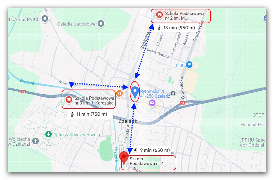 Dlatego wybierając miejsce do życia, warto wziąć pod uwagę gdzie jest szkoła. Jeśli mieszkasz przy ul. Bytomska 20 w Czeladzi - to w odległości nie większej niż 13 minut spacerem masz do wyboru trzy szkoły. A jeśli pójdziesz trochę dalej - kolejne kilka. Jesteś w centrum. Wszędzie masz blisko.