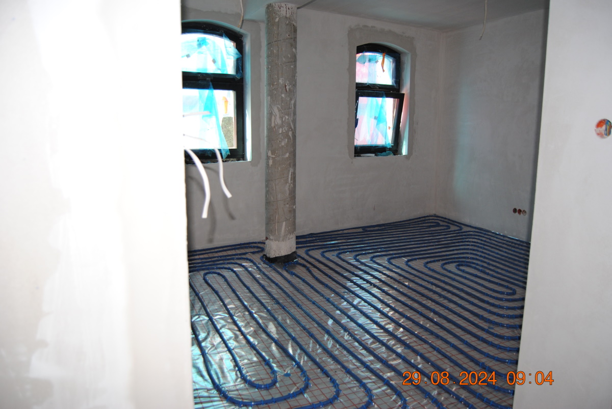 W niektórych mieszkaniach zakończono już montaż ogrzewania, a spirala grzewcza została już przykryta specjalną wylewką.