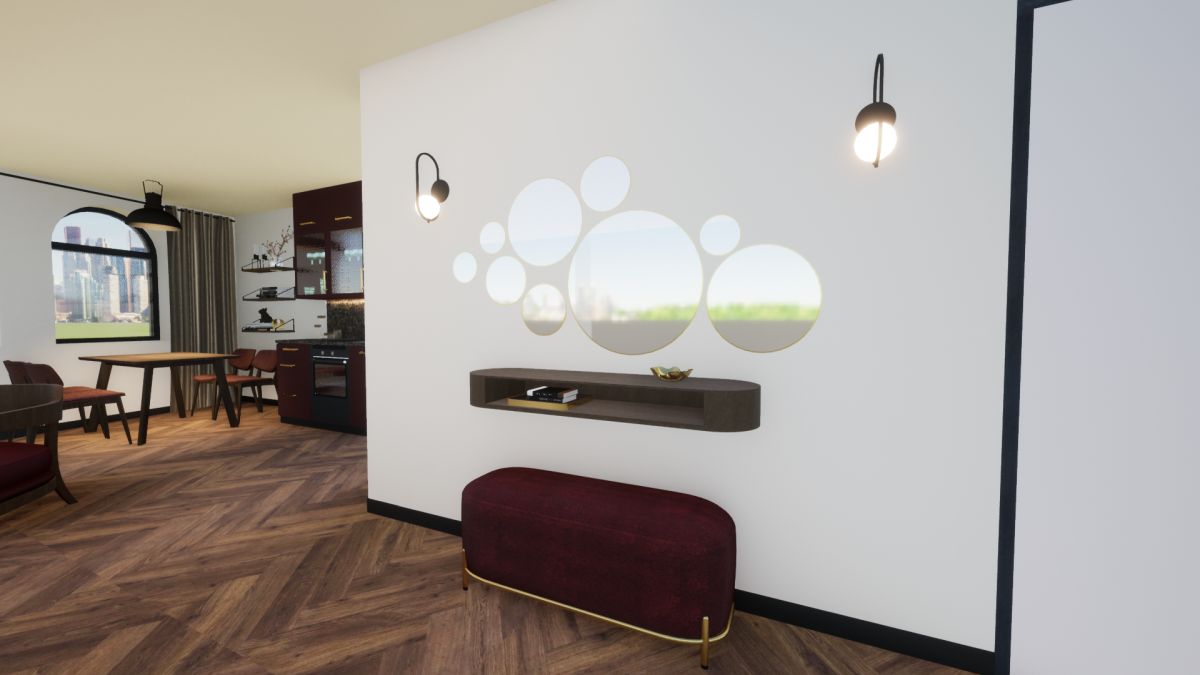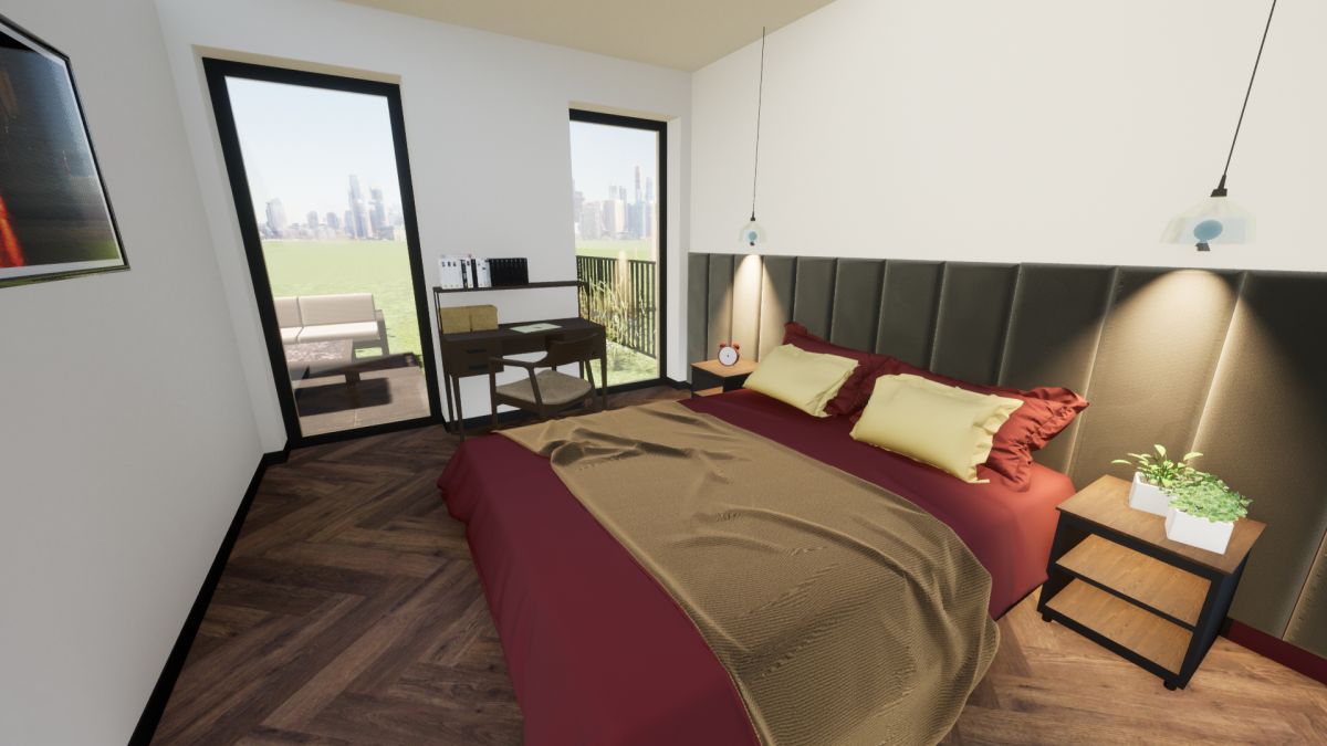 Przestronne lokum, zapewniające komfort mieszkania nawet dla dużej rodziny. Na lewo od wejścia znajduje się wyjątkowo duży (26,5 m2), jasny salon z otwartą kuchnią, z trzema oknami na lewej ścianie. Na wprost od wejścia jest łazienka z WC, a na prawo - drzwi do dwóch kolejnych pokoi, posiadających wyjścia na taras.