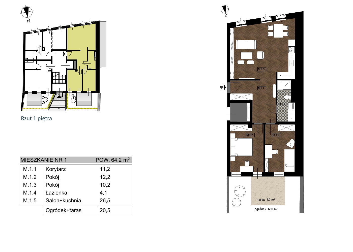 Rodzinne 3-pokojowe mieszkanie o powierzchni 64,2 m2 z ogródkiem i tarasem