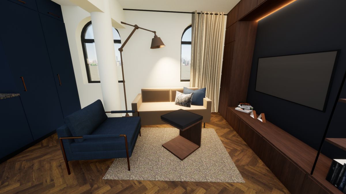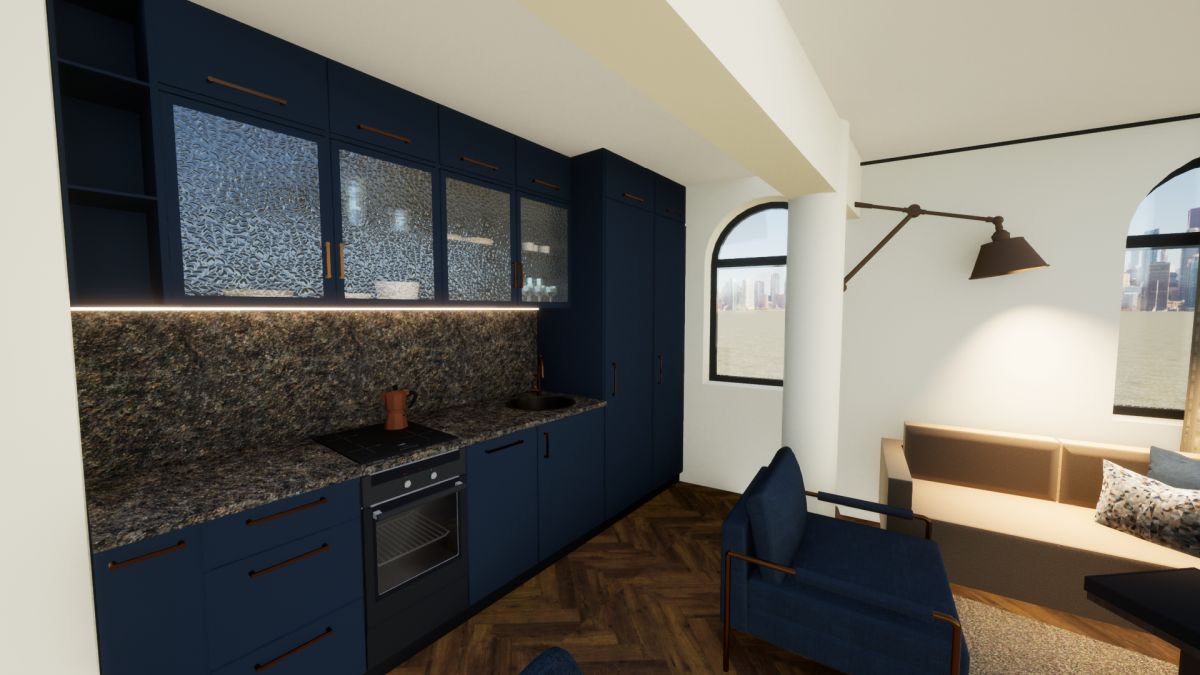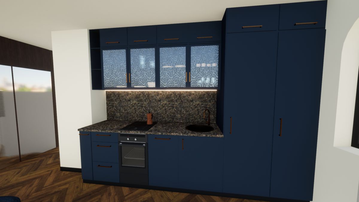 Wygodne, 2 pokojowe mieszkanie. Po wejściu korytarzem, na wprost znajduje się łazienka z WC. Po prawej stronie salon z kuchnią, a następnie kolejny pokój.