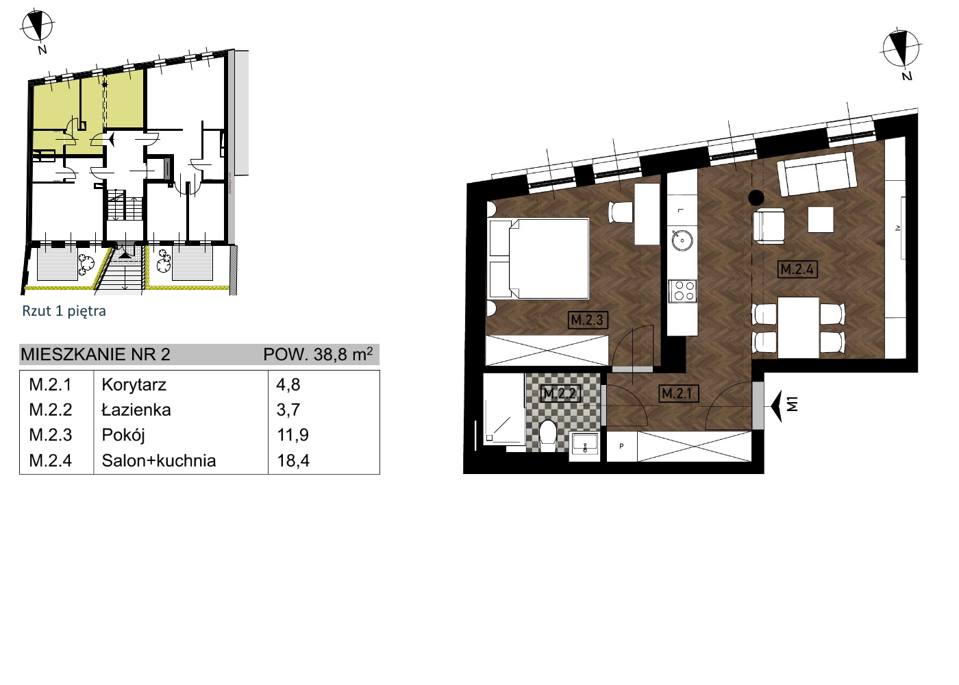 Wygodne 2-pokojowe mieszkanie o powierzchni 38,8m2