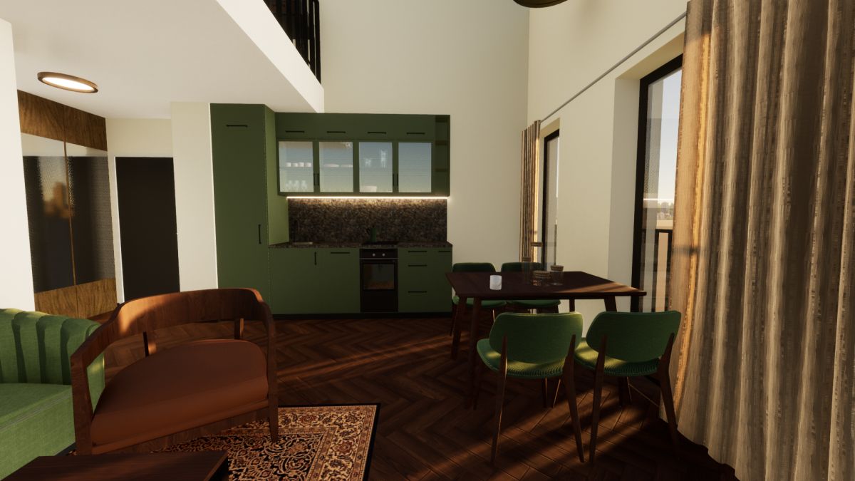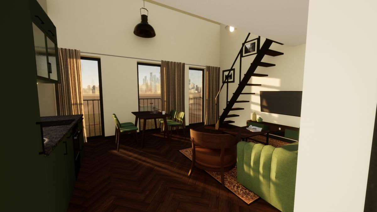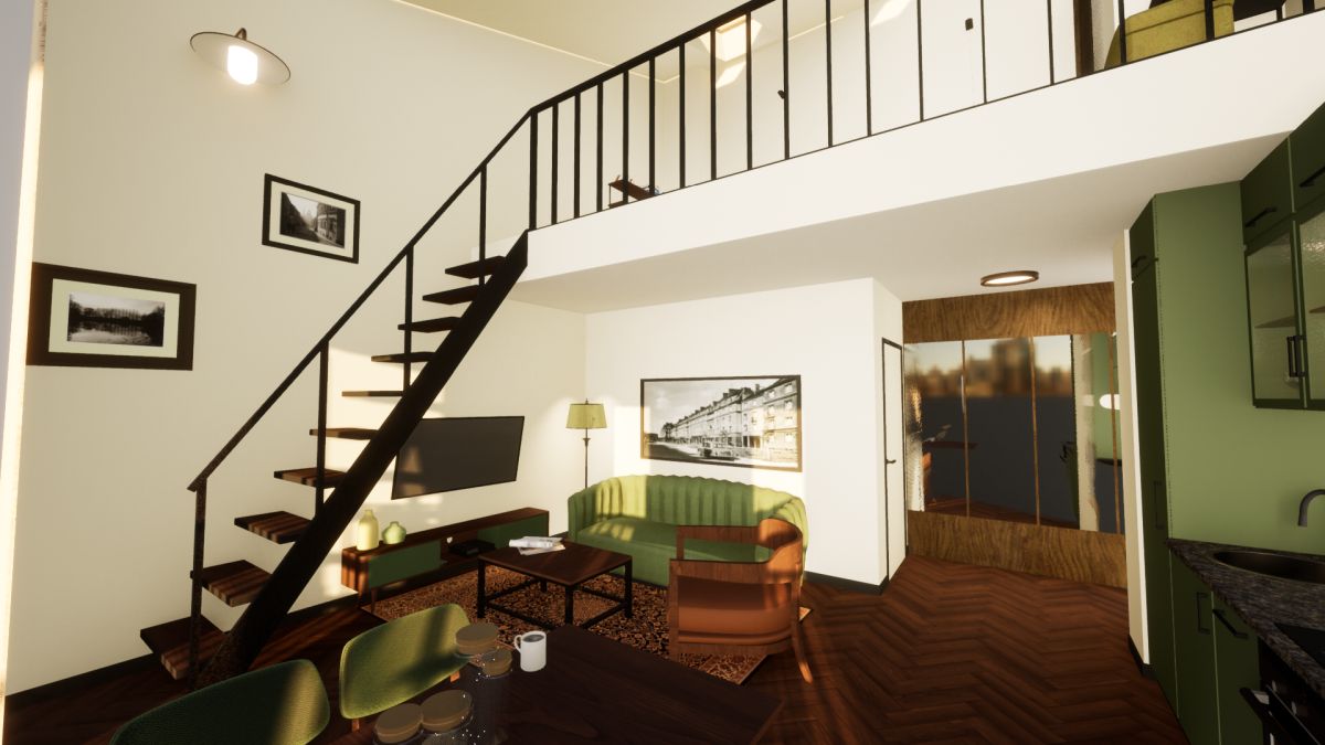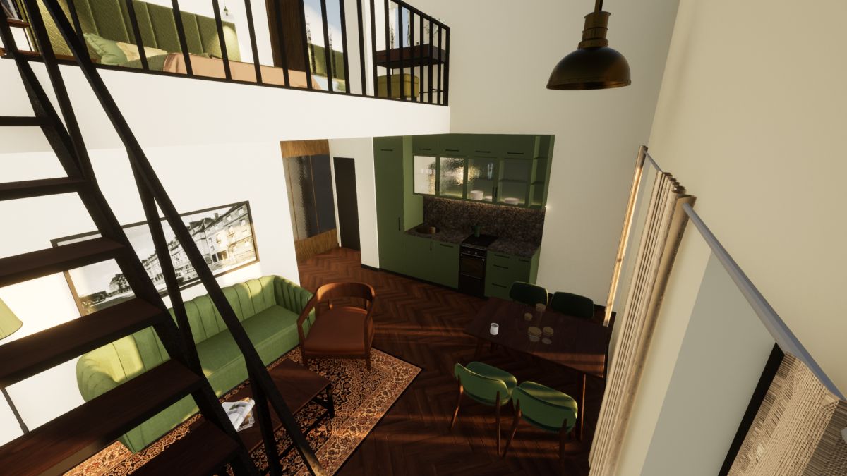 Dwupoziomowe studio, umożliwiające aranżację wnętrza w nowoczesnym, modnym stylu. Na dole znajduje się przestronny (22,2 m2), foremny salon z otwartą kuchnią i łazienka z WC. Z salonu schody prowadzą na dużą antresolę, w której z łatwością urządzisz sypialnię, miejsce do pracy, bądź - jeśli wolisz - przestrzeń, gdzie możesz realizować swoje pasje. Albo i jedno, i drugie...