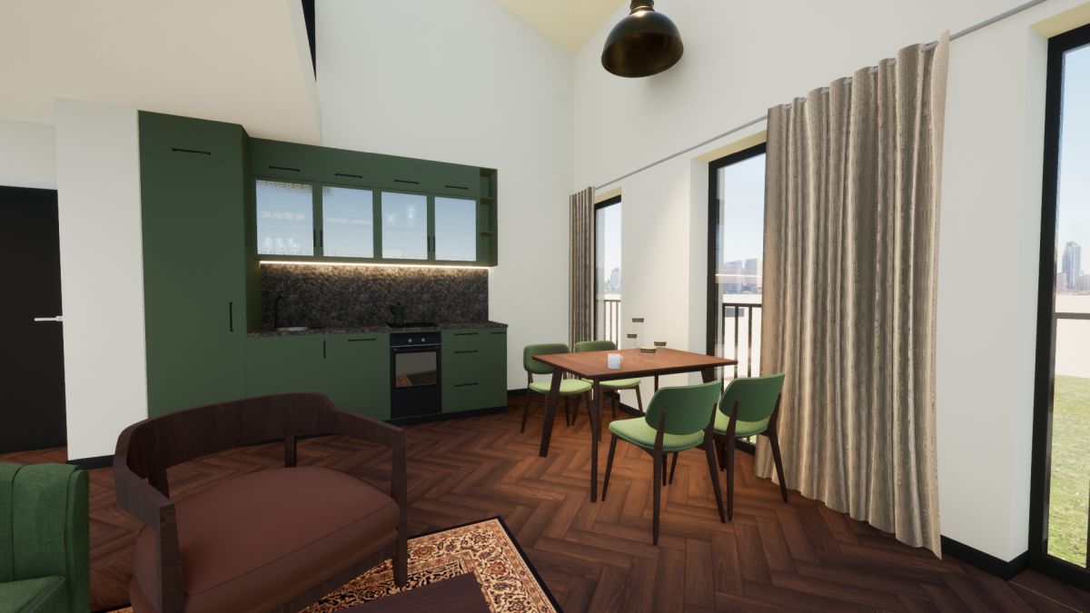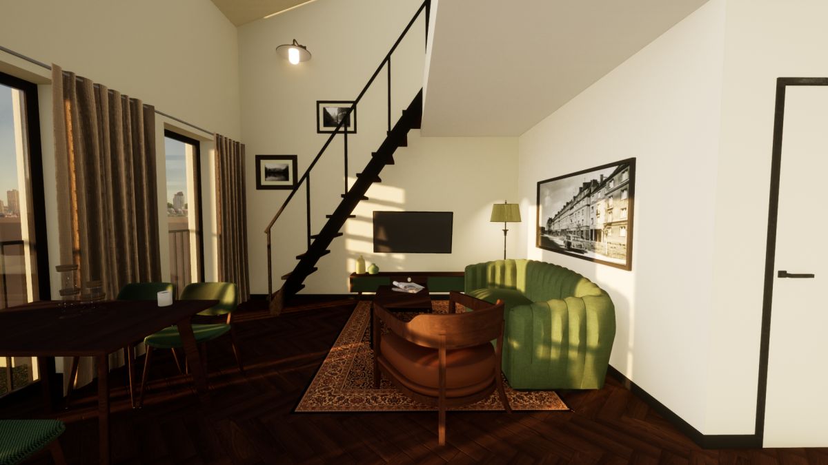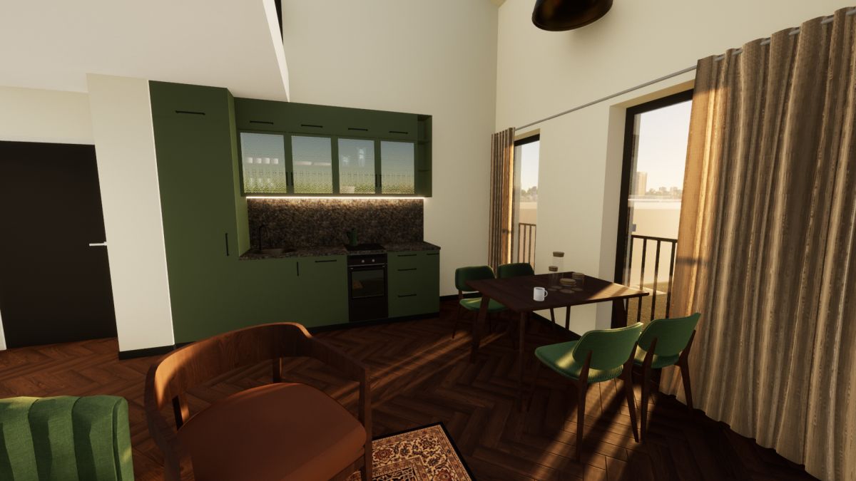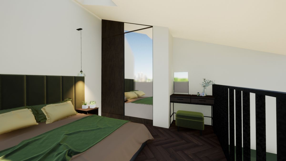 Dwupoziomowe studio, umożliwiające aranżację wnętrza w nowoczesnym, modnym stylu. Na dole znajduje się przestronny (22,2 m2), foremny salon z otwartą kuchnią i łazienka z WC. Z salonu schody prowadzą na dużą antresolę, w której z łatwością urządzisz sypialnię, miejsce do pracy, bądź - jeśli wolisz - przestrzeń, gdzie możesz realizować swoje pasje. Albo i jedno, i drugie...