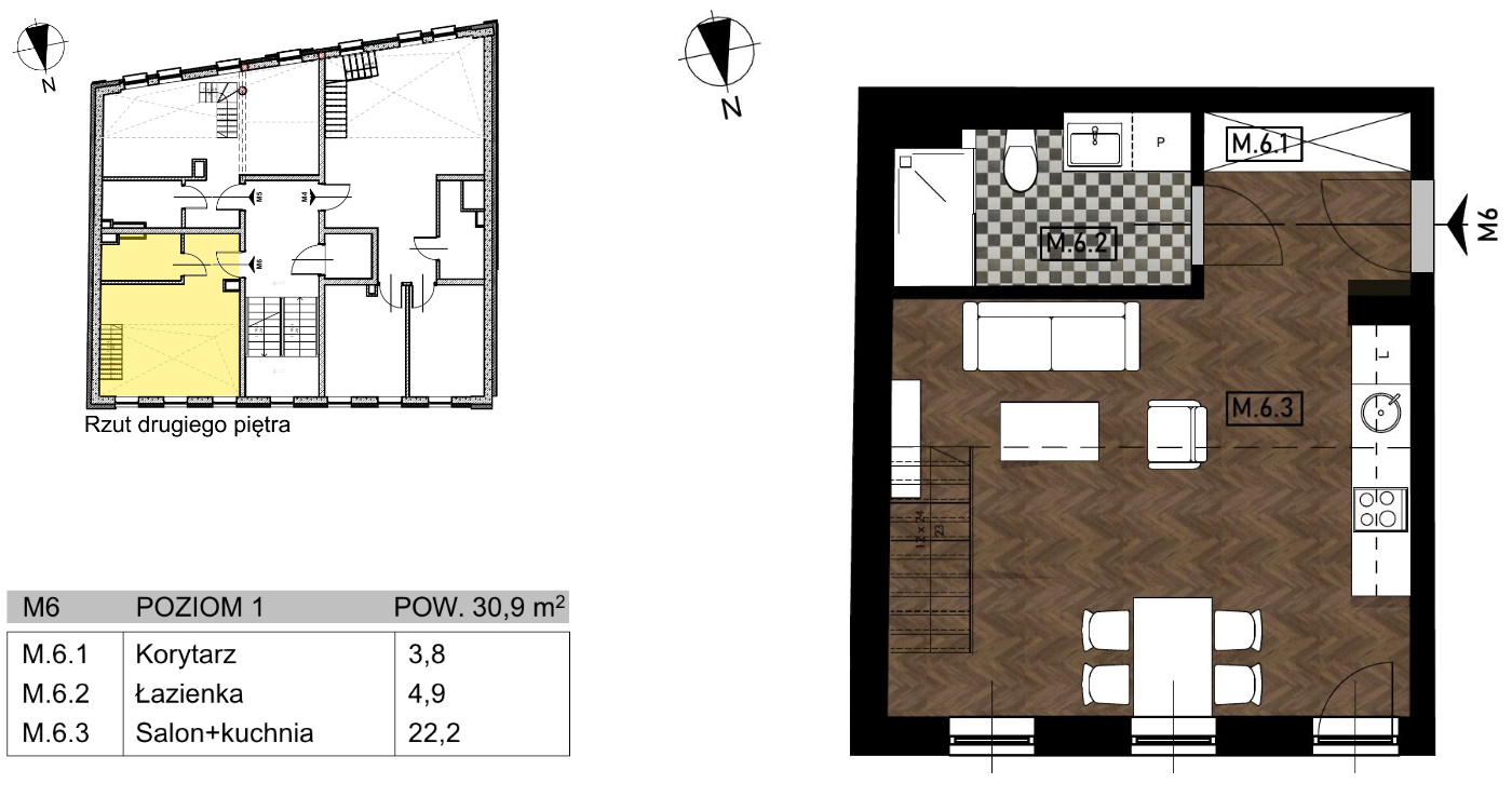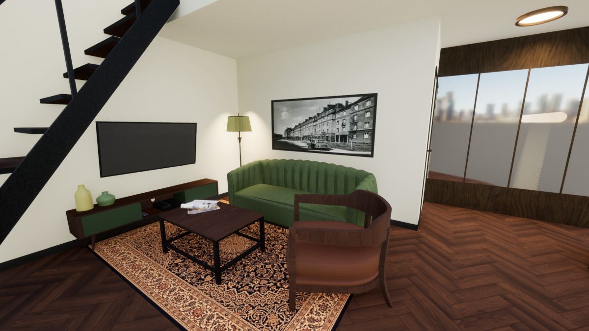 Nowoczesne, dwupoziomowe studio o powierzchni 48,1 m2